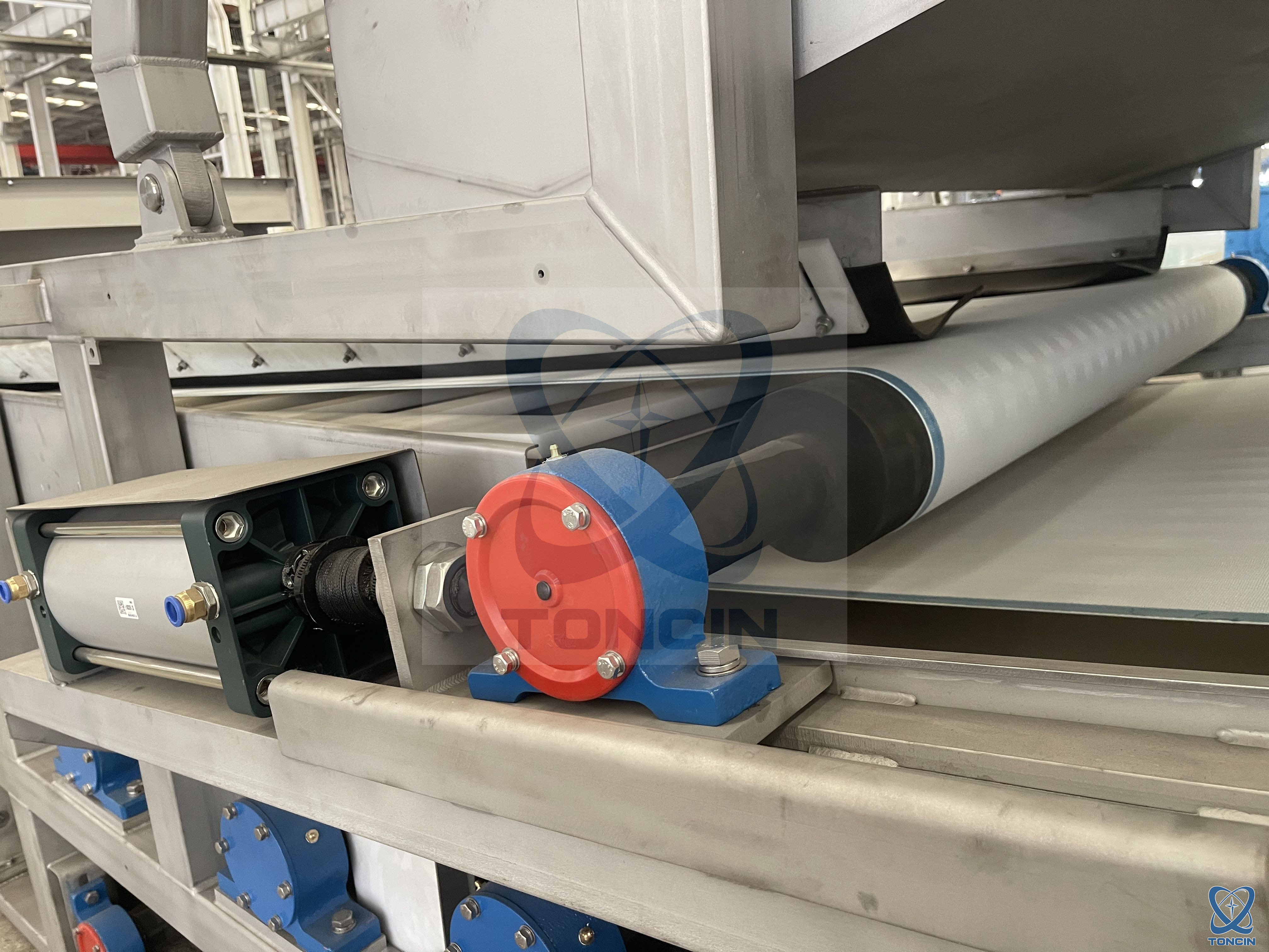10. Les dispositifs de tension pneumatique et de suivi automatique garantissent un fonctionnement sûr et stable de la bande filtrante.
